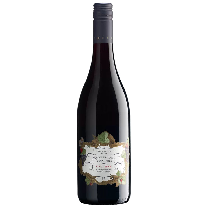 セントラル・オタゴの中でも標高の高い単一畑“ミステリアス・ディギングス”から収穫されたピノ・ノワールは、スミレやラベンダー、タイムに赤果実が寄り添う華やかで繊細な香り立ち。レッドチェリーやラズベリーにモカ、スパイスの要素が重なり、シルキーでしなやかなテクスチャーが余韻まで続く。生き生きとしたエネルギーを内に秘めながらも、全体は非常にエレガントにまとまり、飲み手の心にすっと染み込む秀逸な味わい。